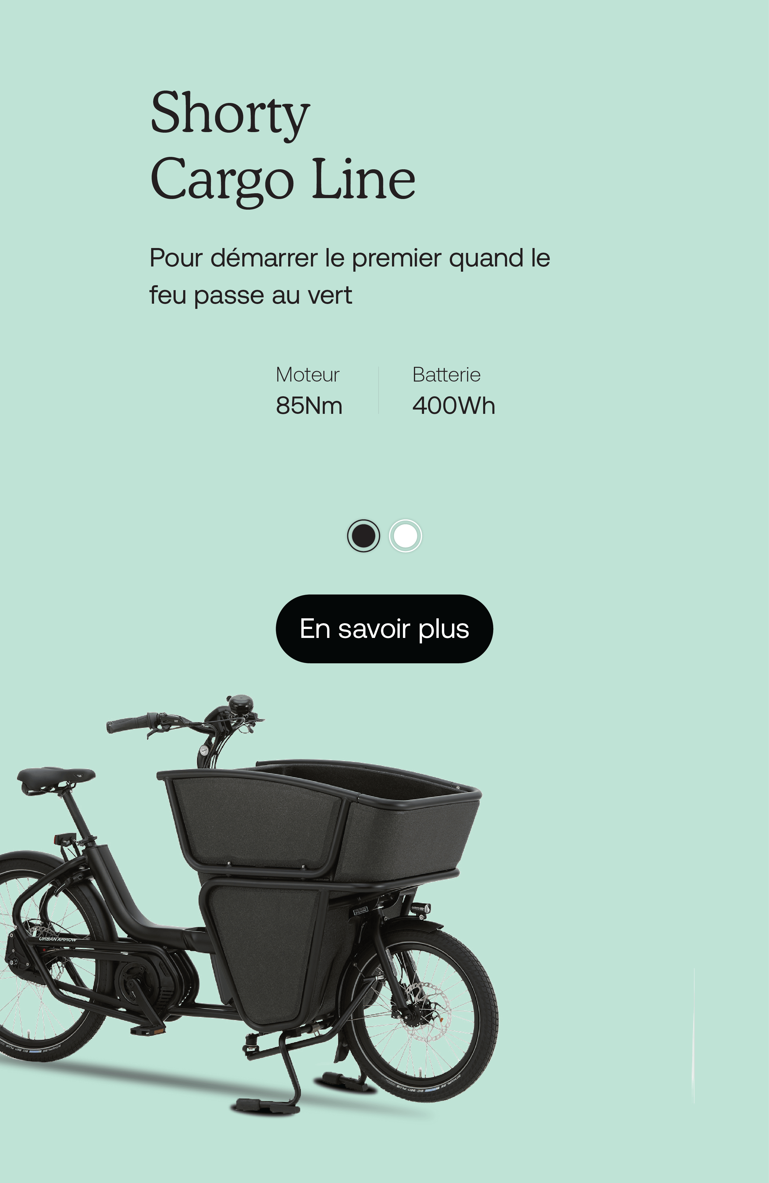 Vous ne pouvez tout simplement pas passer à côté de cet allié de taille. Avec son volume compact et son incroyable maniabilité, il ne vous quittera plus. Il va sans dire que ce vélo électrique est le plus compact. Pourtant, son impact est immense. La caisse en PPE a un usage très polyvalent. Transportez votre animal de compagnie ou vos courses sans effort. Avec nos accessoires, personnalisez-le à souhait. Vous pouvez par exemple y ajouter un couvercle verrouillable, et votre Urban Arrow Shorty devient un vélo de coursier en un clin d’œil. Si ça, ce n’est pas de la polyvalence